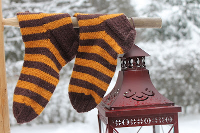 Lahjasukkiakin olisi voinut kutoa, mutta halusin hemmotella itseänikin syksyn ahkeruuden jälkeen. Niinpä kaivoin houkuttelevan väriset Maija-langat kopasta ja tein ihan oman maun mukaiset sukat, yksinkertaiset, raidalliset, ja ihanan väriset!